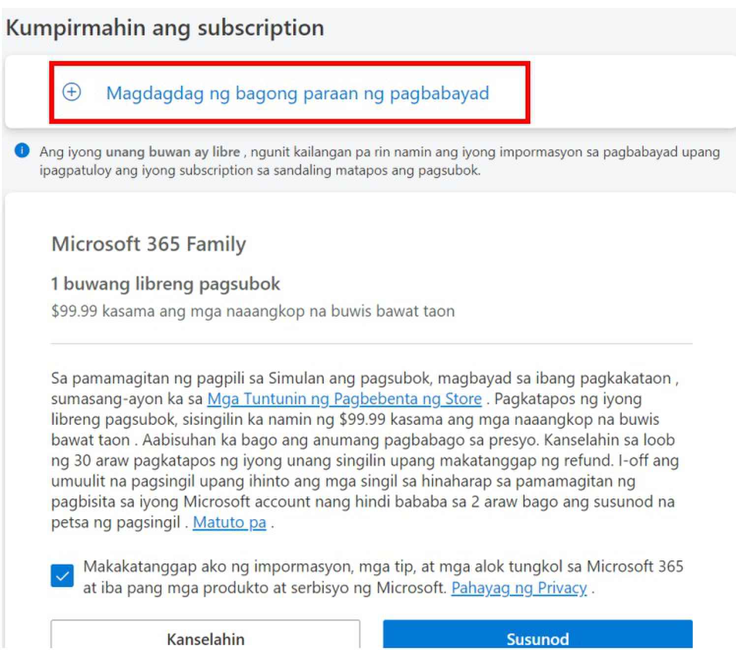 Tandaan: Ang eksaktong mga hakbang ay maaaring mag-iba ng kaunti depende sa iyong lokasyon at ang kasalukuyang mga alok mula sa Microsoft.