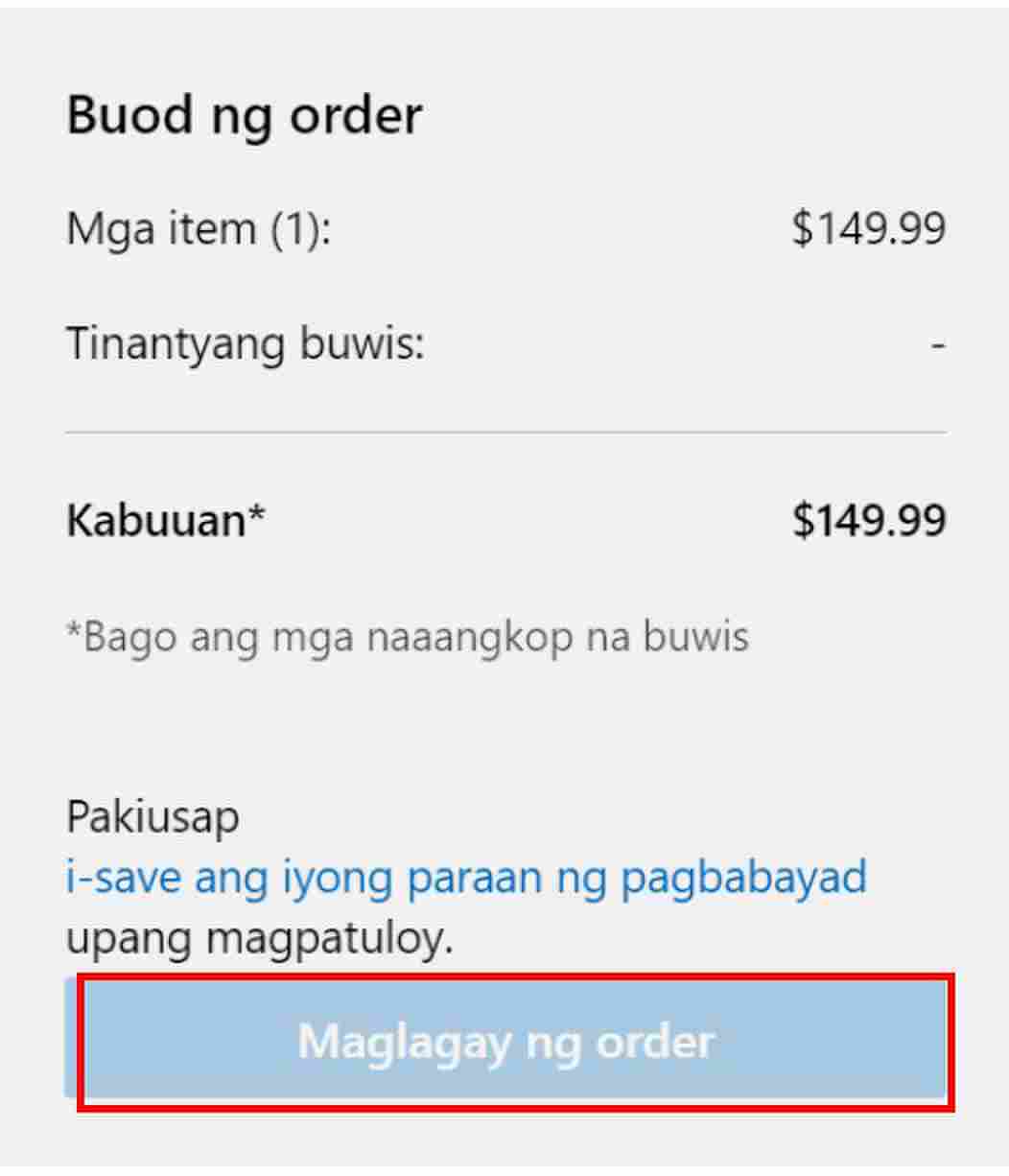 Suriin ang buod ng iyong order at i-click ang "Ilagay ang order."