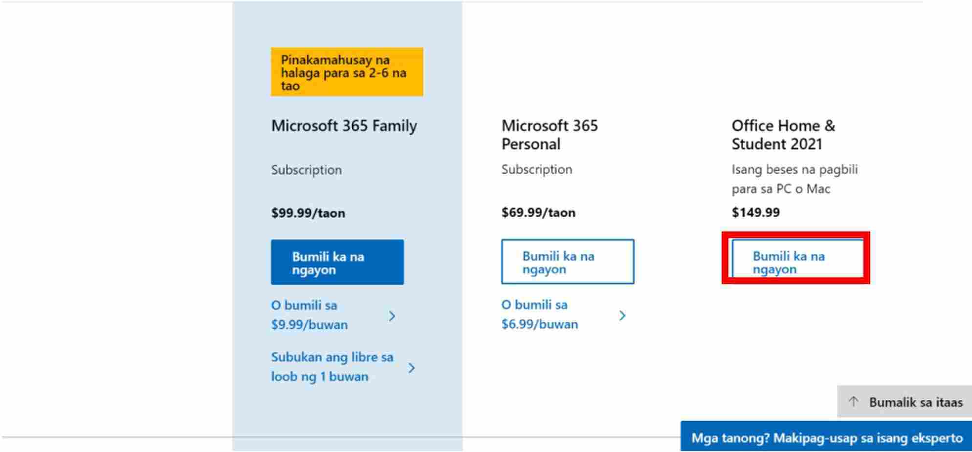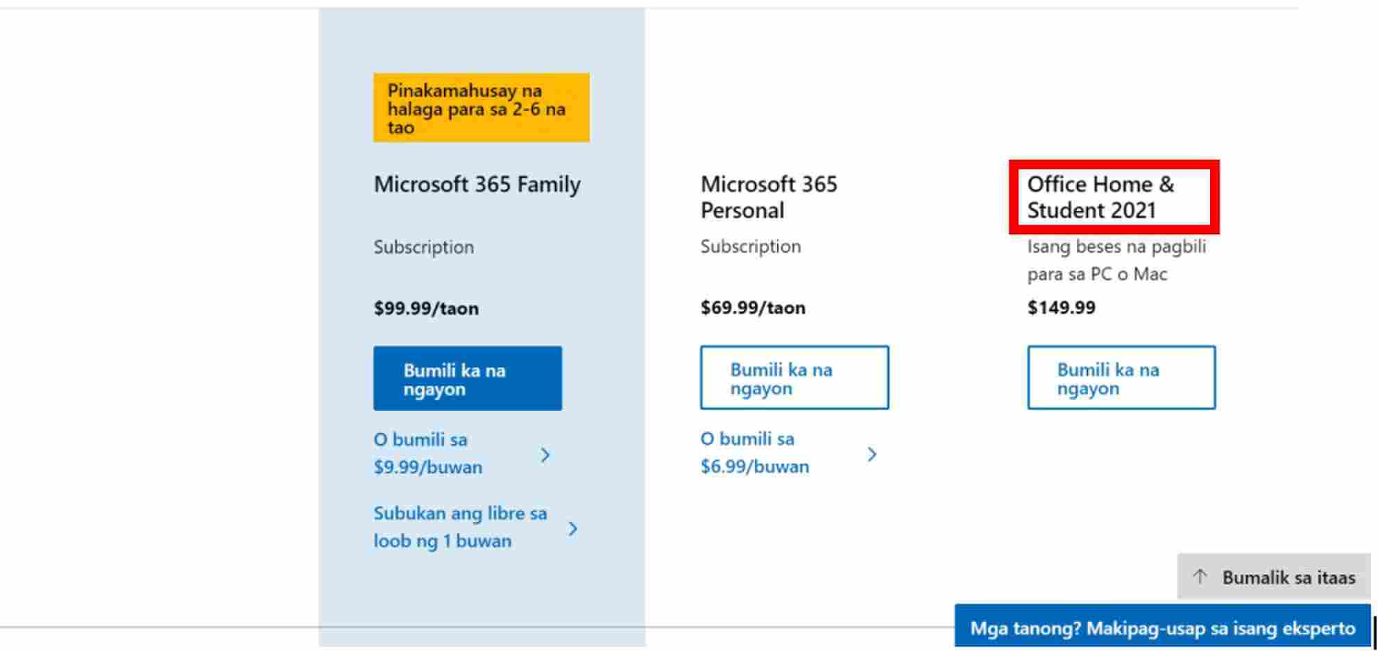 Pumili ng bersyon ng Office na nais mong bilhin.